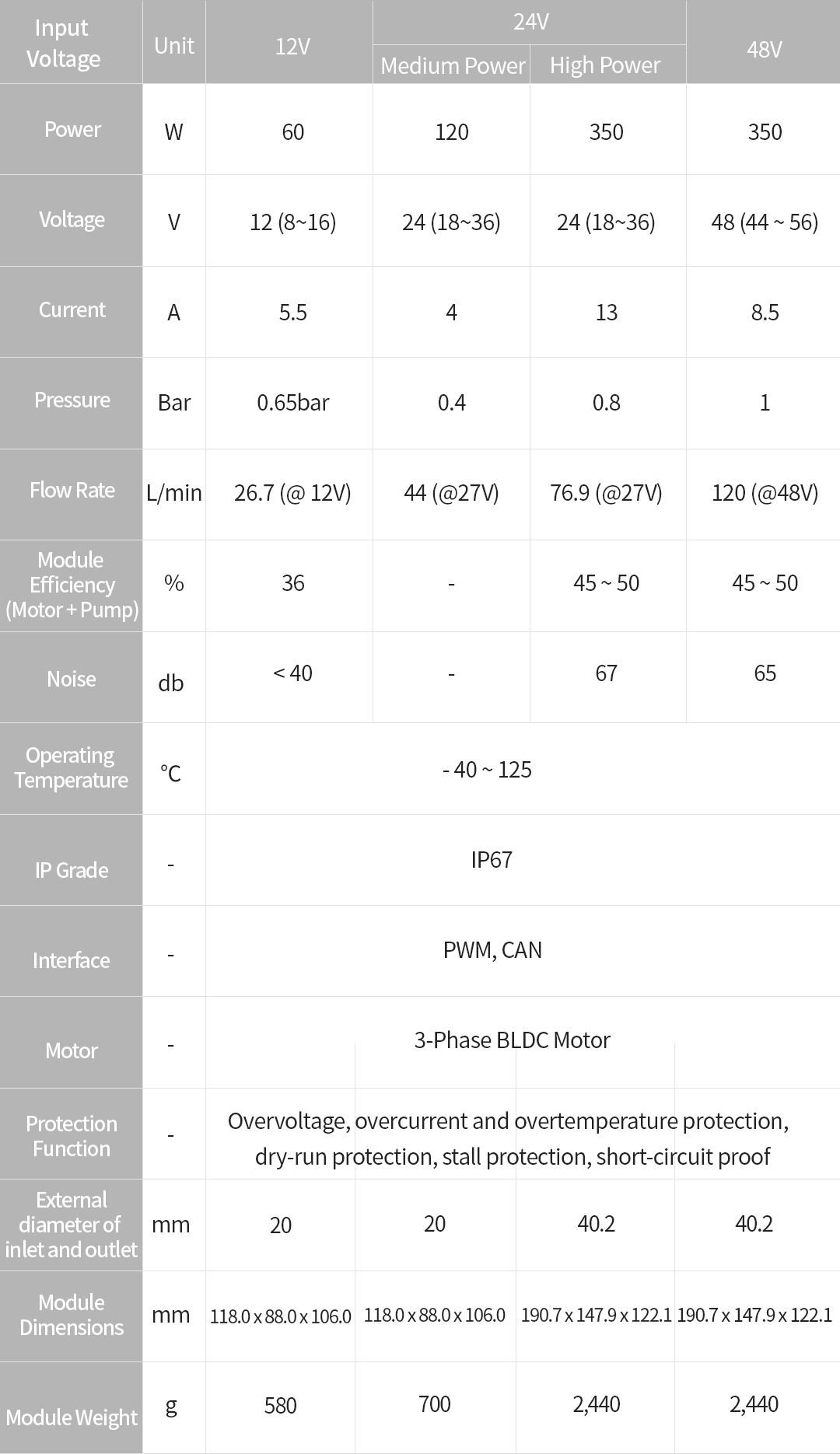 - Integrated module with a 3-Phase BLDC motor, a circulating pump and a controller